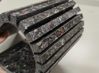 家具部材と、古着リサイクル素材の家具展示
